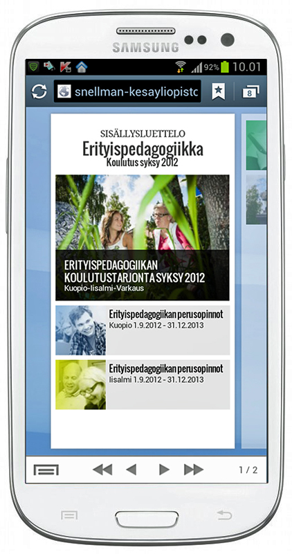 Snellman-kesäyliopiston koulutusopas Samsung Galaxy SIII -puhelimessa. Klikkaa kuvaa suurentaaksesi sen!