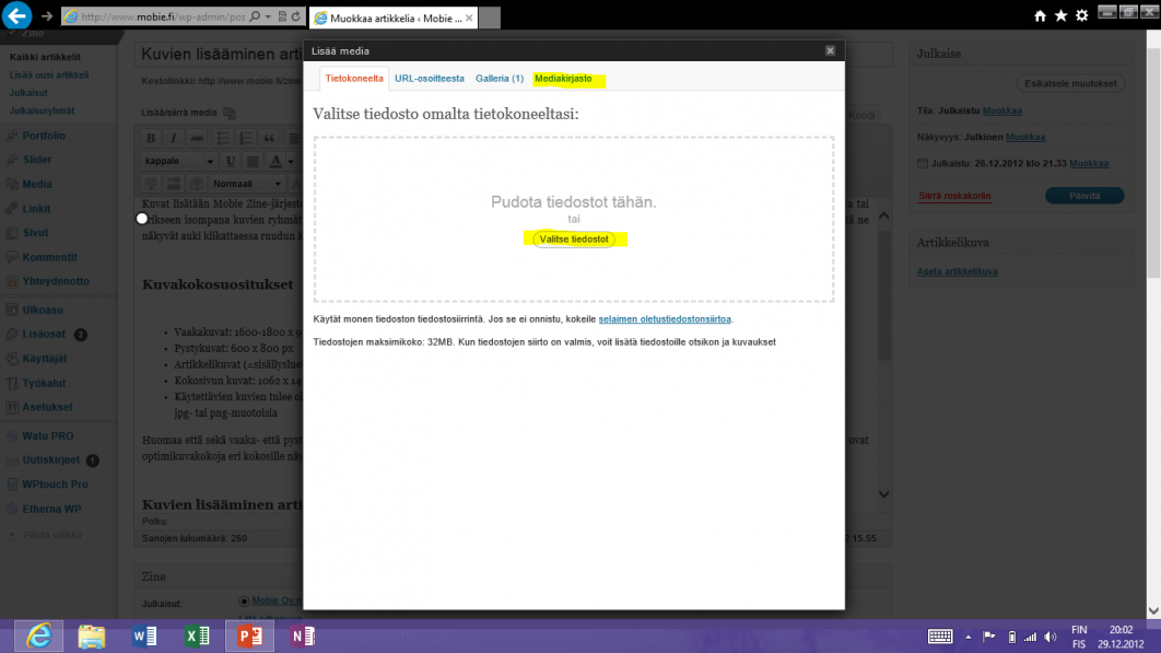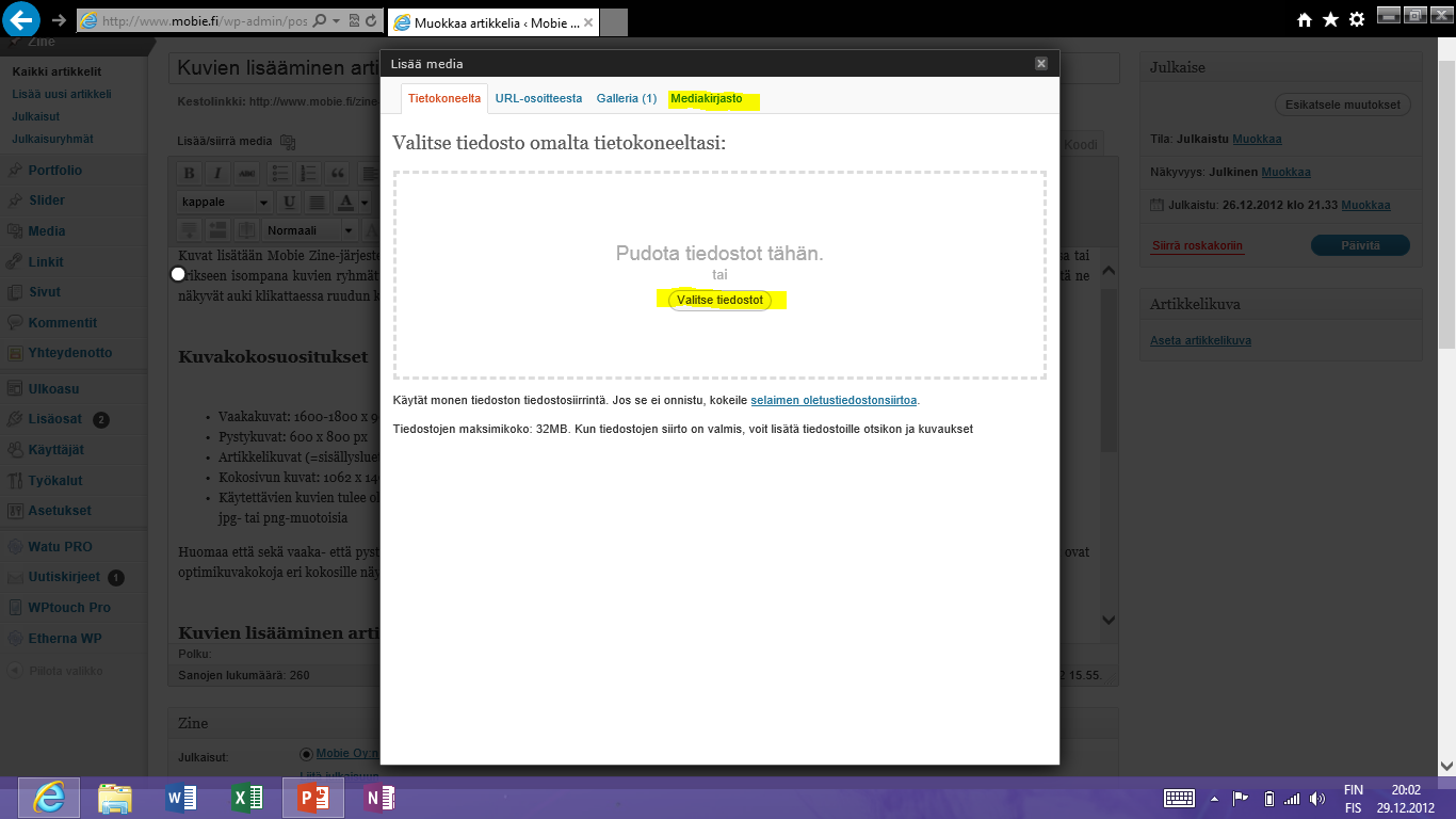 Kunka lisäät valokuvia Mobie Zine-artikkeliin