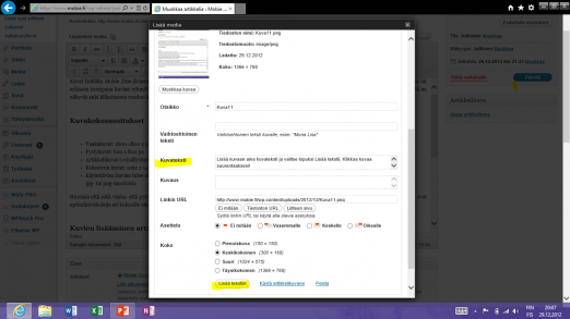 - Kirjoita avautuvaan lomakkeeseen aina kuvateksti sille varattuun kohtaan